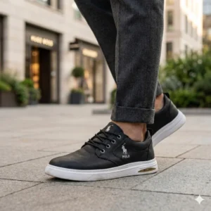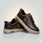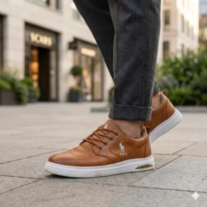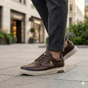 الجزء العلوي بلمسة جلدية ناعمة يمنح الحذاء فخامة واضحة، بينما يوفر النعل المطاطي المرن ثباتًا ممتازًا وراحة طوال اليوم. تصميمه الخفيف يجعله مناسبًا للاستخدام الطويل بدون تعب، مع تفاصيل دقيقة تضيف لمسة أناقة مميزة.
